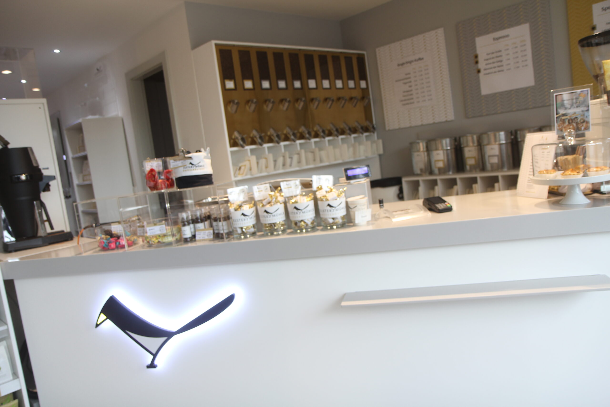 Mittlerweile hat diese Spezialitätenrösterei drei Ladengeschäfte: eines im Frankfurter Westend (Uni Campus), eines im Nordend (Friedberger Landstraße 86) und das „jüngste Baby“ in der Neuen Altstadt. Dort, im alten, wieder aufgebauten Viertel Frankfurts, hat die Rösterei unweit des Stoltze-Brunnens einen langen, schmalen Raum bezogen, der zur rechten Seite von einigen Fenstern aus dunklem Holz gerahmt wird.