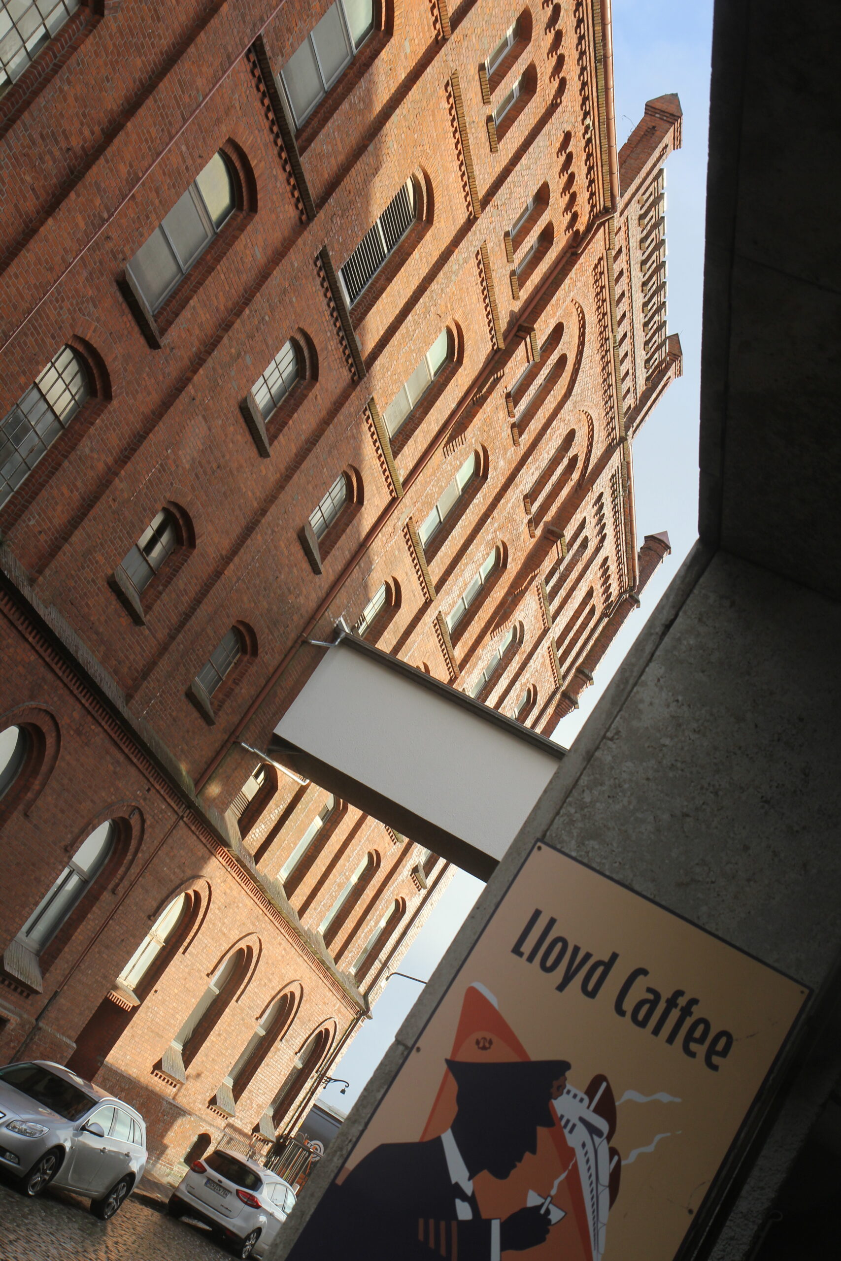 Lloyd Caffee, die seit 1930 rösten, hat nicht nur eine schöne Terrasse im Sommer, sondern befindet sich in historischen Räumlichkeiten. Sie sind Teil des denkmalgeschützten Gebäudeensembles von Kaffee Hag.